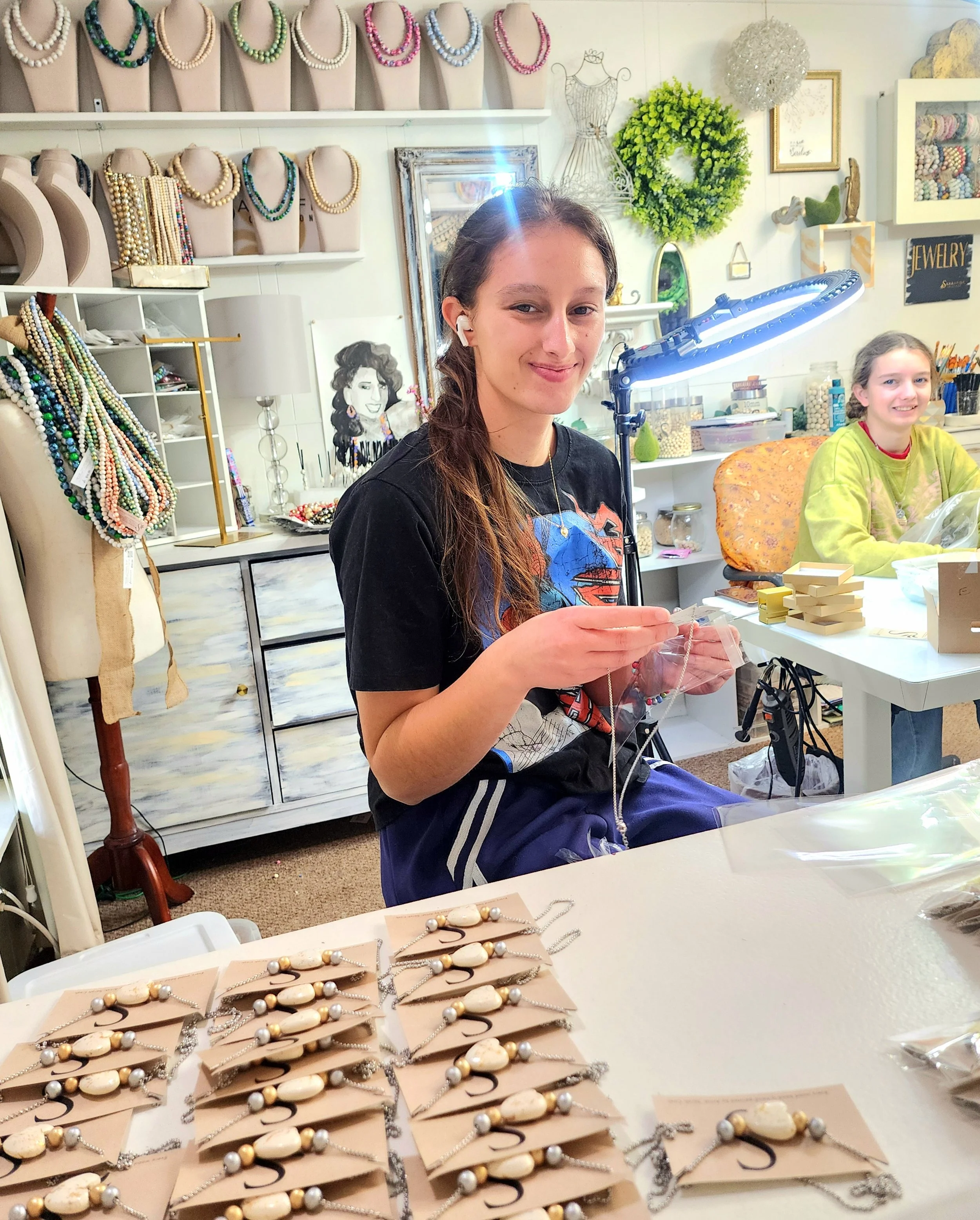 This statement has been Sarahfide's slogan since the beginning of our journey. At first, this catchphrase came from the word that our Sarahfide era was born upon: Joy. But as time has passed and our business has grown like curious vines, Joy has taken on a fresh, beautiful definition.This past Saturday, Sarahfide was given the opportunity to do a live with the Discount Divas Boutique. It was two hours of fun and color, and of course, beautiful handmade jewelry.Sneak peek into our lives: Sarah and Diva Lauren were selling the jewelry, John was the beast behind the scenes tracking inventory, and us girls were the silent supporters at a friend's house. Our job was to collect every electronic device and get them off the property to conserve wifi, but that didn't stop us from cheering on Mom.Now, several days later, we are just finishing up the order. It is no joke when we say it is a family ordeal. You walk into the studio, and Sarah is painting beads or tying up Veras and bracelets. John is at his desk doing metalwork with help from Aleiah from the dining room table. Then Abella and I package in the corner of the studio. All while we cycle through Steven Spielberg and Marvel in the background.There are lots of laughs, many times of checking over each other's shoulders, and countless moments of love. Small encouragements and tight hugs erase the tension of concentration, like a band-aid.That's what the Joy is all about. Six years ago, as a family, we were in a low place, trying to build back our roots. With time came beauty, and with growth came radiance. Even though it was a bumpy ride and nowhere near perfect, we, as a family and a business, have found something we want to share. Bravery in the scary times, trust when it gets hard, and joy even when there seems to be no hope. So Sarahfide will keep spreading joy, one bead at a time.~ Ariana